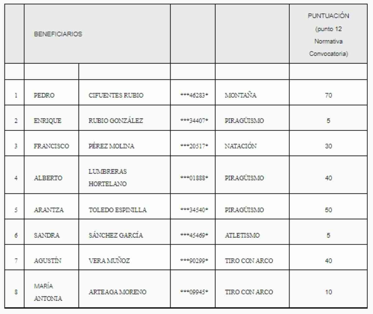 En la imagen que ilustra la nota, el listado provisional de los beneficiarios, hay diez días hábiles para presentar alegaciones.
