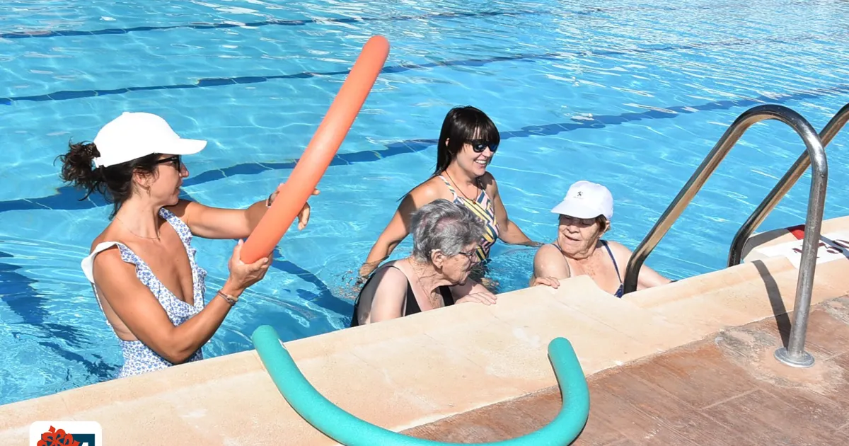 Esta actividad tenía como objetivo principal trabajar la fuerza y la movilidad de las personas mayores con los beneficios que aporta el ejercicio en el medio acuático. Durante los meses centrales del verano, un día a la semana, los usuarios y usuarias del Centro de Día participaron en esta actividad en la Piscina Municipal, de 11:00 a 12:00 horas.