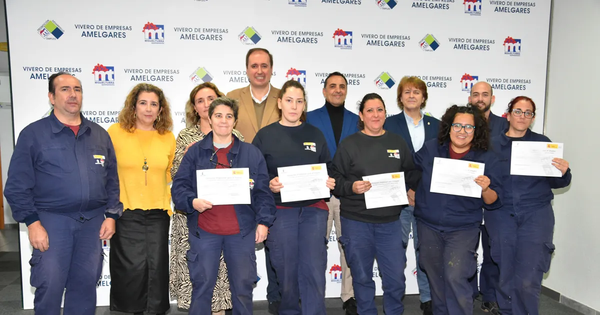 El alcalde de Miguelturra, Luís Ramón Mohíno, acompañado por el concejal de Promoción Económica y Empleo, Miguel Ángel García, y el Delegado Provincial de la Consejería de Economía, Empresas y Empleo, Agustín Espinosa, visitaron las naves municipales para participar en la clausura y entrega de diplomas del programa de recualificación y reciclaje profesional (RECUAL) con certificado de profesionalidad: Soldadura con electrodo revestido y TIC. Esta formación tuvo una duración de seis meses y contó con una inversión por parte de la Junta de Comunidades de Castilla-La Mancha de más de 100.000 euros, así como con fondos propios del Ayuntamiento.