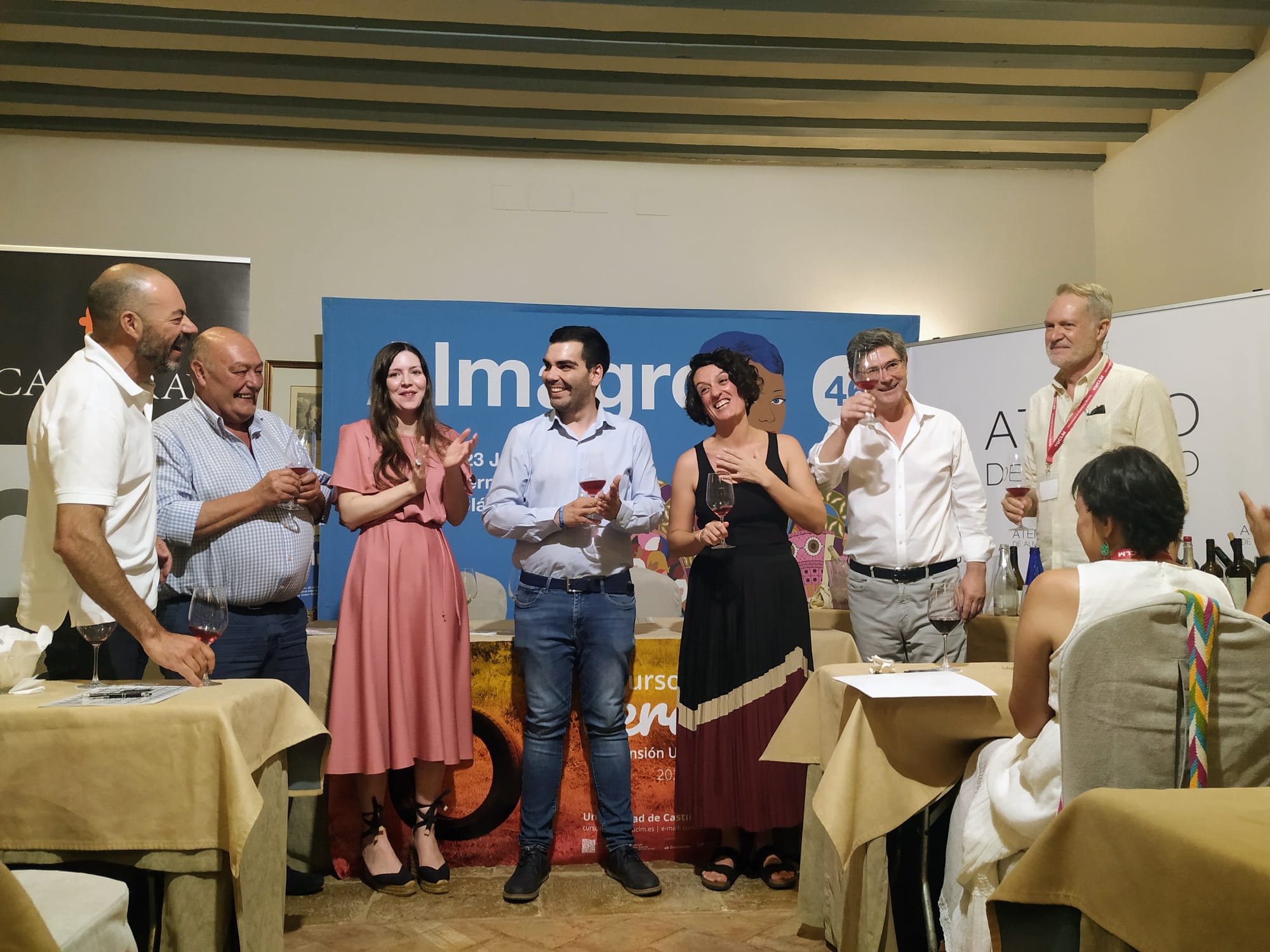 Así mismo, la Asociación para el Desarrollo del Campo de Calatrava también colaboró con el Curso “De la Viña a la copa: ciencia técnica y arte en el vino” impulsado por el Grado en Enología de la Universidad de Castilla La Mancha (UCLM), con una cata de vinos de seis bodegas asociadas a la Fundación para la Promoción del Vino del Campo de Calatravaen el Aula Magna del Parador ante 70 personas, entre las que se encontraban tanto los alumnos y profesores del curso, como autoridades y actores y directores de compañías de teatro.