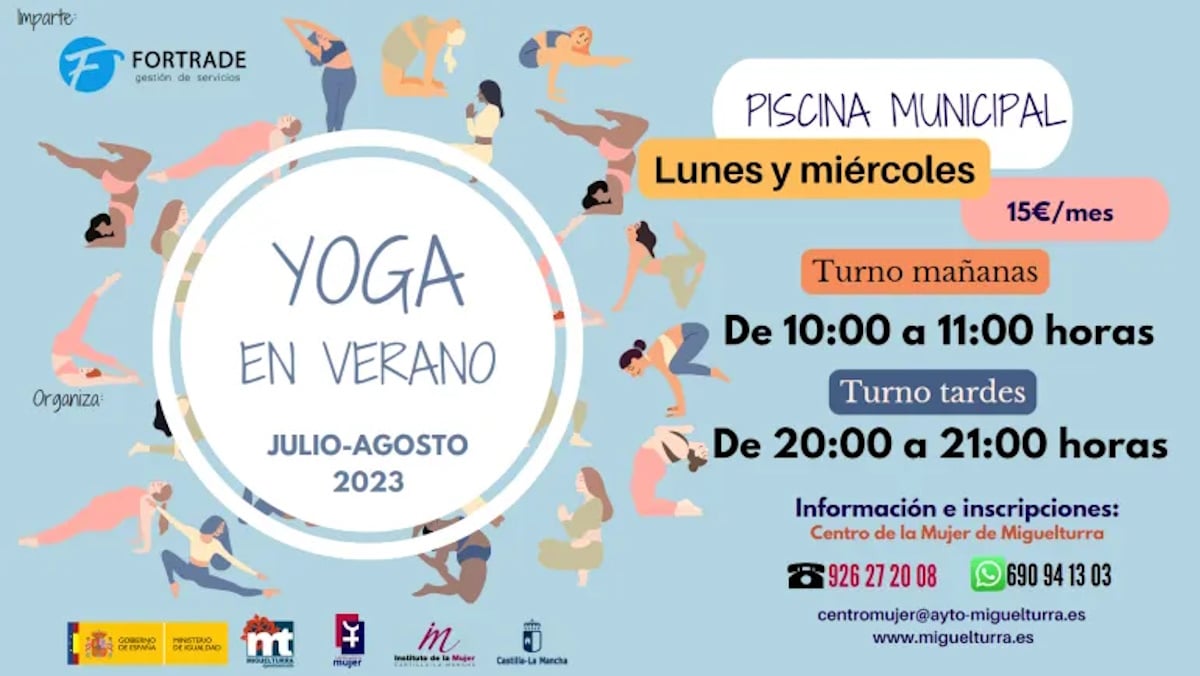 Los talleres de yoga serán impartidos por Fortrade Gestión S.L., en la piscina municipal, del 3 de julio al 30 de agosto. De esta forma y para adaptarse a distintos horarios de los usuarios participantes se han establecido dos turnos: