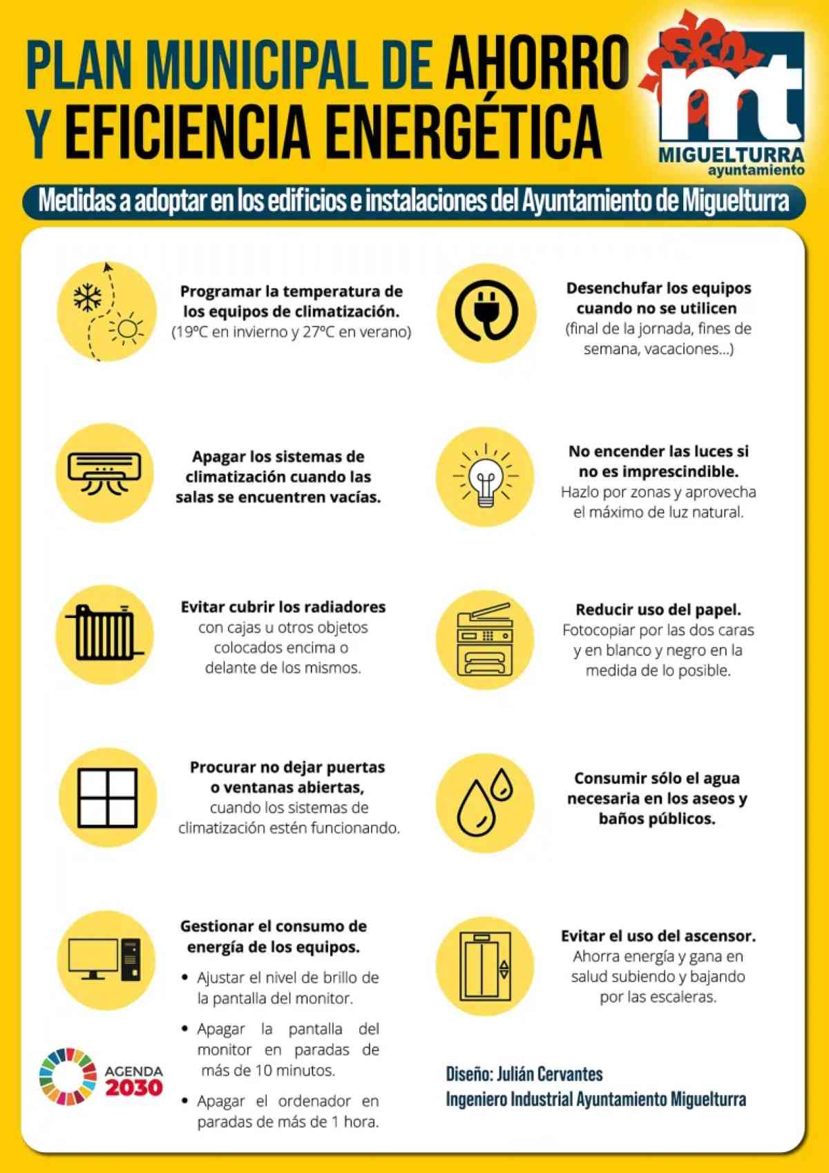 Un Plan de Ahorro Energético para los edificios municipales de la localidad, han elaborado las concejalías de Nuevas Tecnologías y Gestión Administrativa, y de Desarrollo Rural y Desarrollo Urbano del ayuntamiento de Miguelturra (Ciudad Real). El mismo tiene como objetivo, contrarrestar la situación actual marcada por el incremento del precio del petróleo, del gas natural y de la energía eléctrica, con el fin de mantener la sostenibilidad presupuestaria, y apostando por medidas estructurales de optimización del consumo energético.
